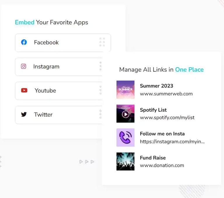 Create social bio links for Instagram, YouTube, Twitter, Snapchat, Tiktok, Facebook, Dribble and more.